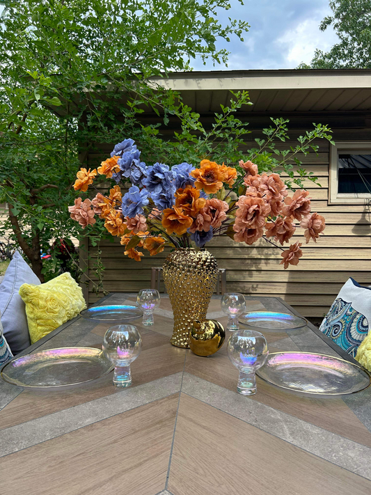 12in. Iridescent Rainbow GLIZZY Plate | 4pcs Dinnerware Set | Babyshower Table Setting, Anniversary Dinner, Gift Set