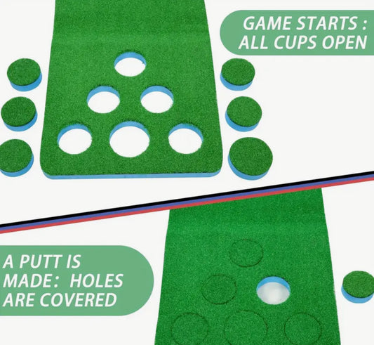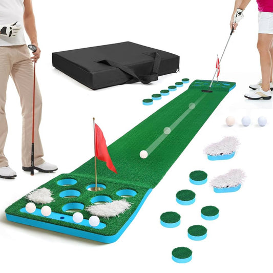 Golf Pong Game Set Putting Mat With White Bunker Grass| 8 Golf Balls, 2 Golf Cups & Flags, 1 Portable Bag | Professional Quality | Portable Indoor & Outdoor Use (Putters Not Included)