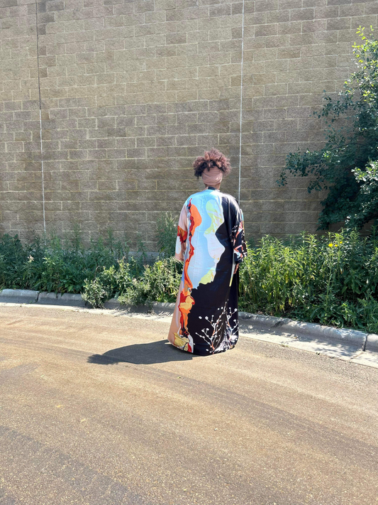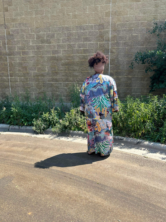 Plus Size Long Elegant Oversized Floor Length Lightweight Open Front Coverup Kimono Duster Robe, PIXEL GARDEN