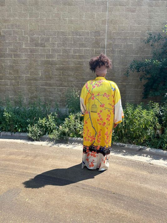 Plus Size Long Elegant Oversized Floor Length Lightweight Open Front Coverup Kimono Duster Robe, YELLOW BLOSSOM