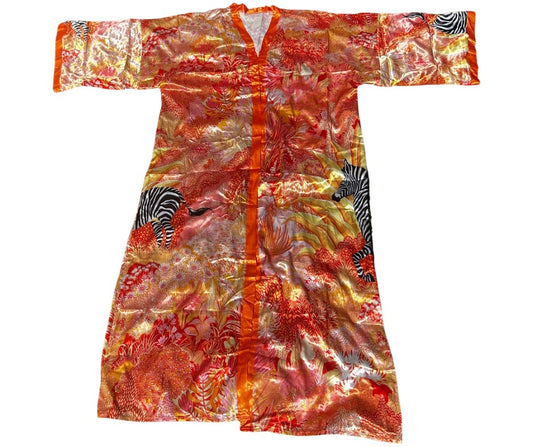 Soft Silky Vivid Plus Size Long Elegant Oversized Floor Length Lightweight Open Front Coverup Kimono Duster Robe, SEXY ZEBRA