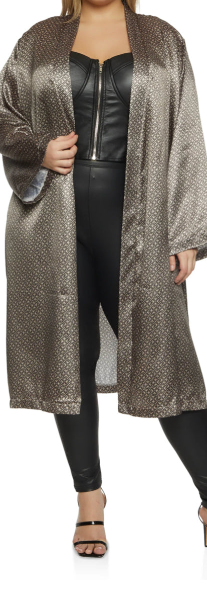 Plus Size Mid-Length Elegant Oversized Lightweight Open Front Coverup Kimono Duster Robe, OPEN HEARTED
