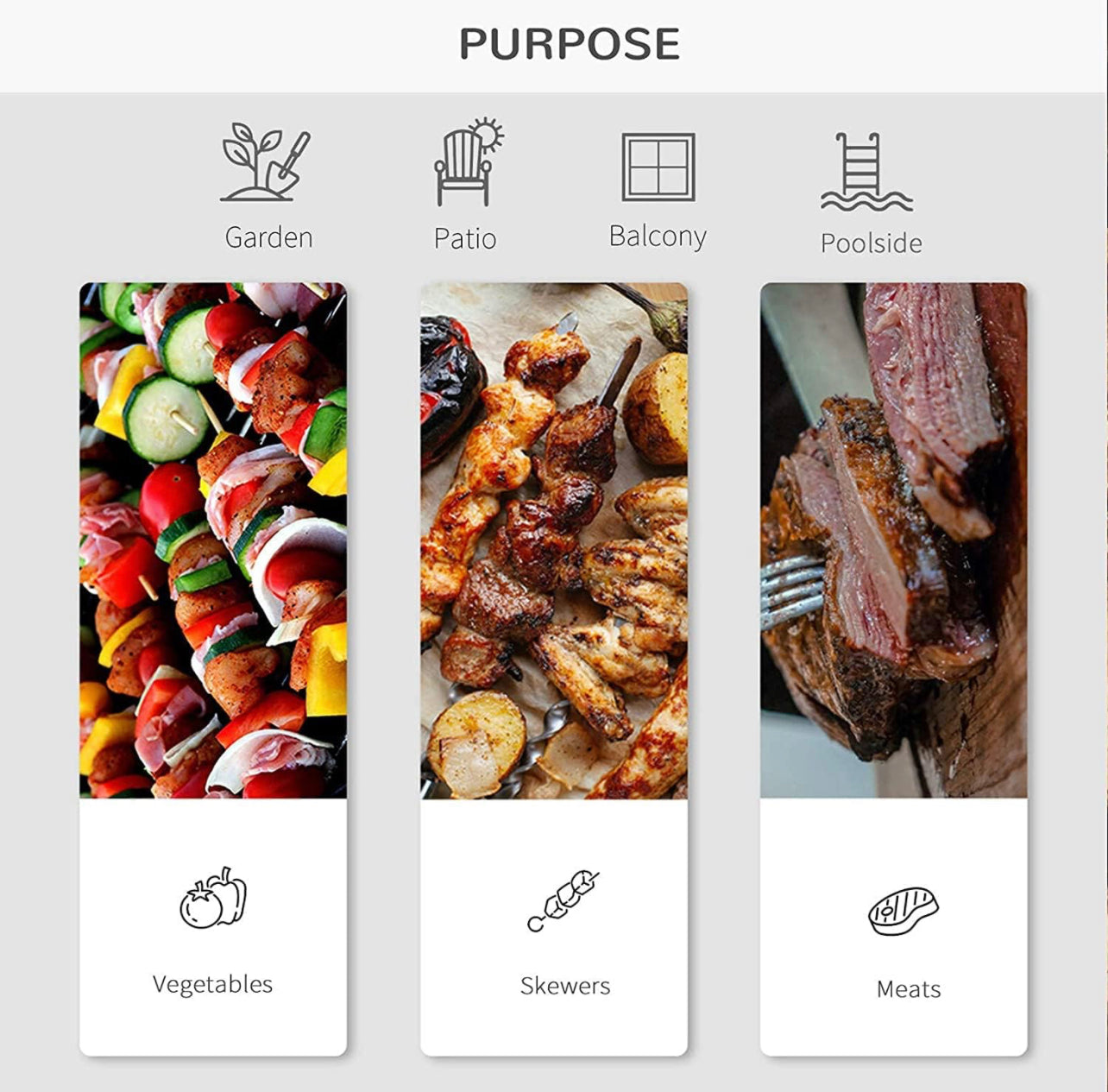 ENJOY YOUR DELICIOUS FOOD: It can grill different ingredients, such as, beef, steaks, kebabs, chicken breast, turkey, onions, corn, green pepper, bacon, etc.