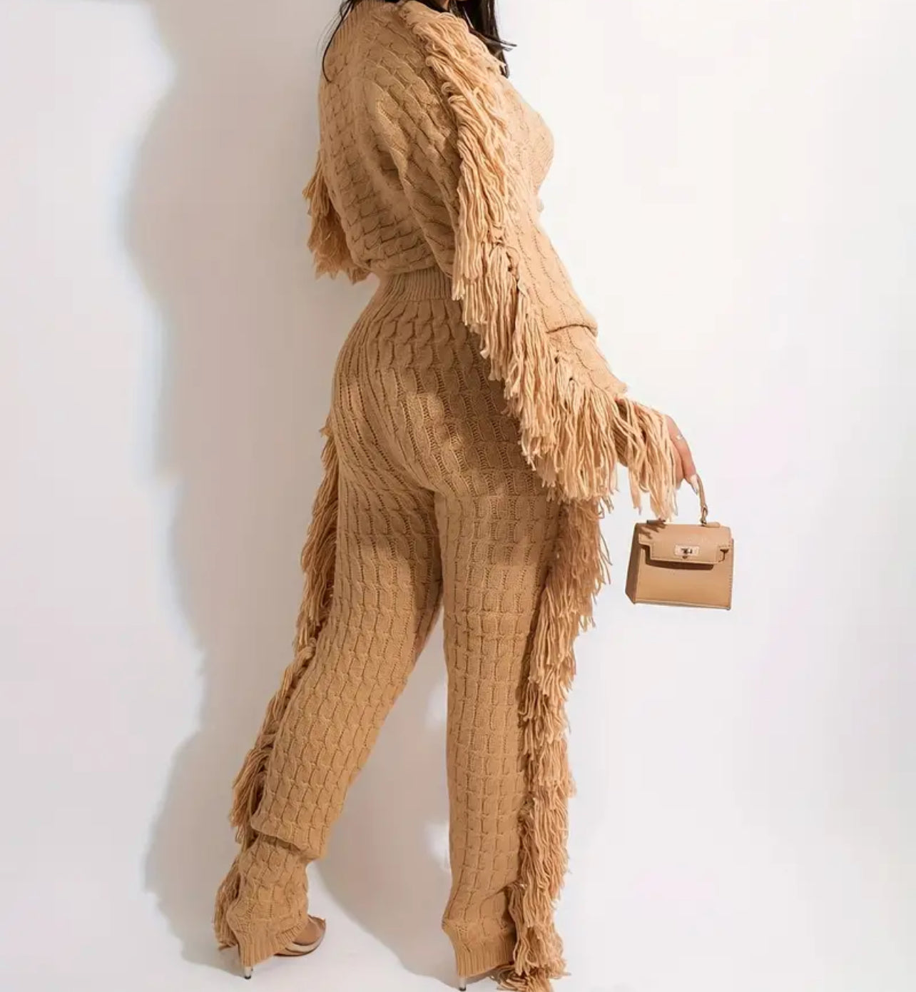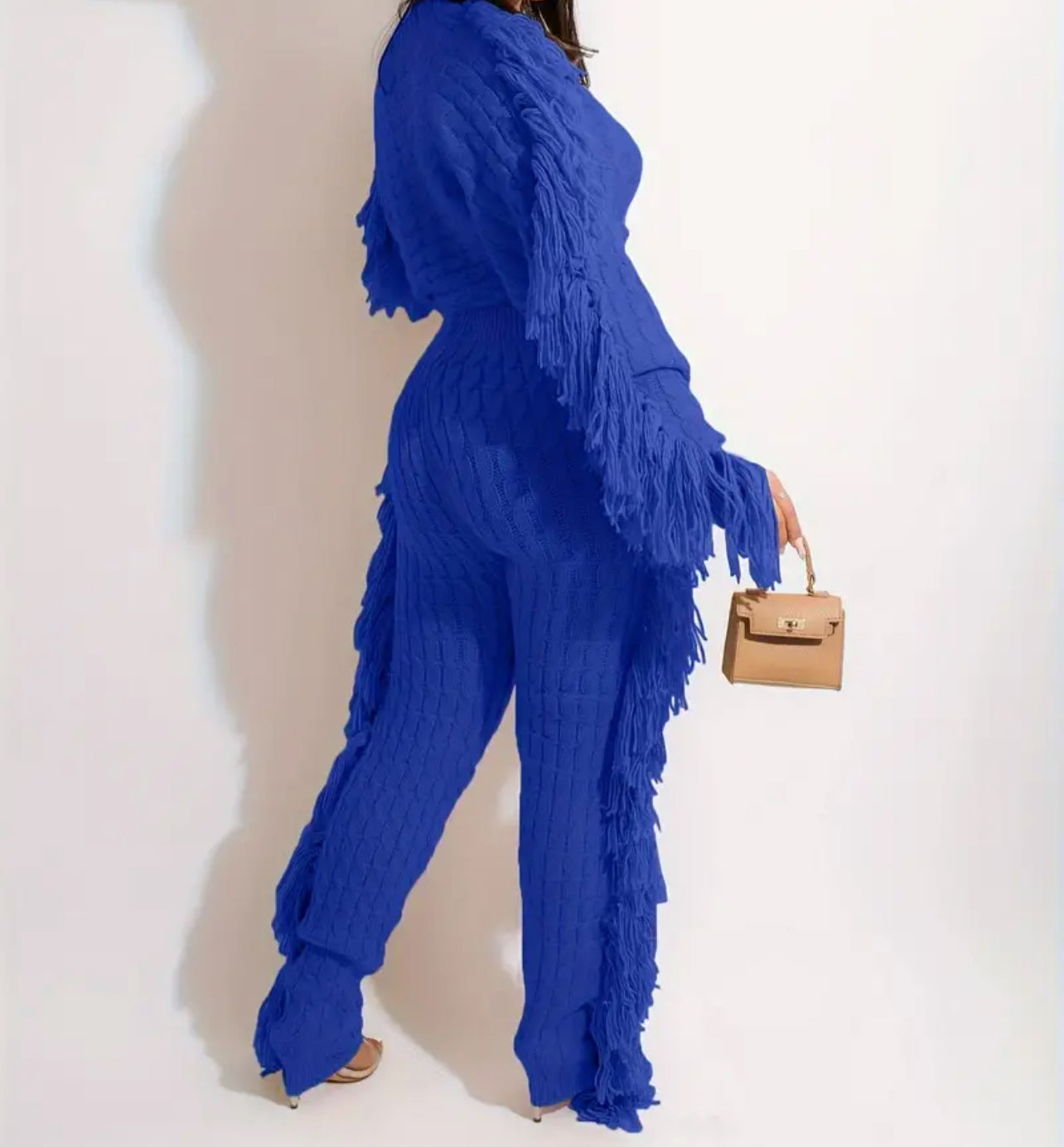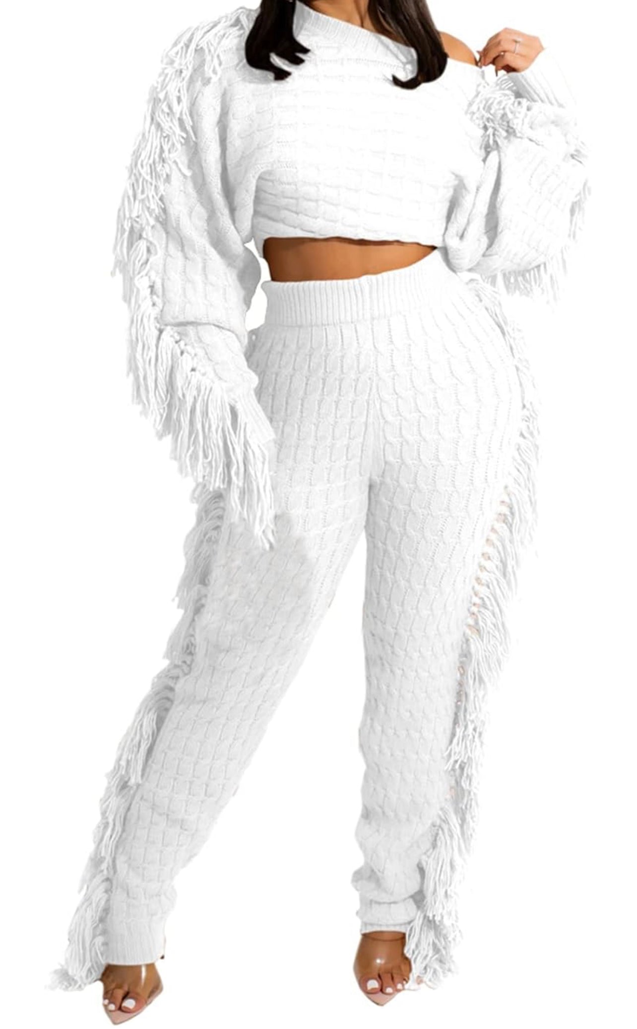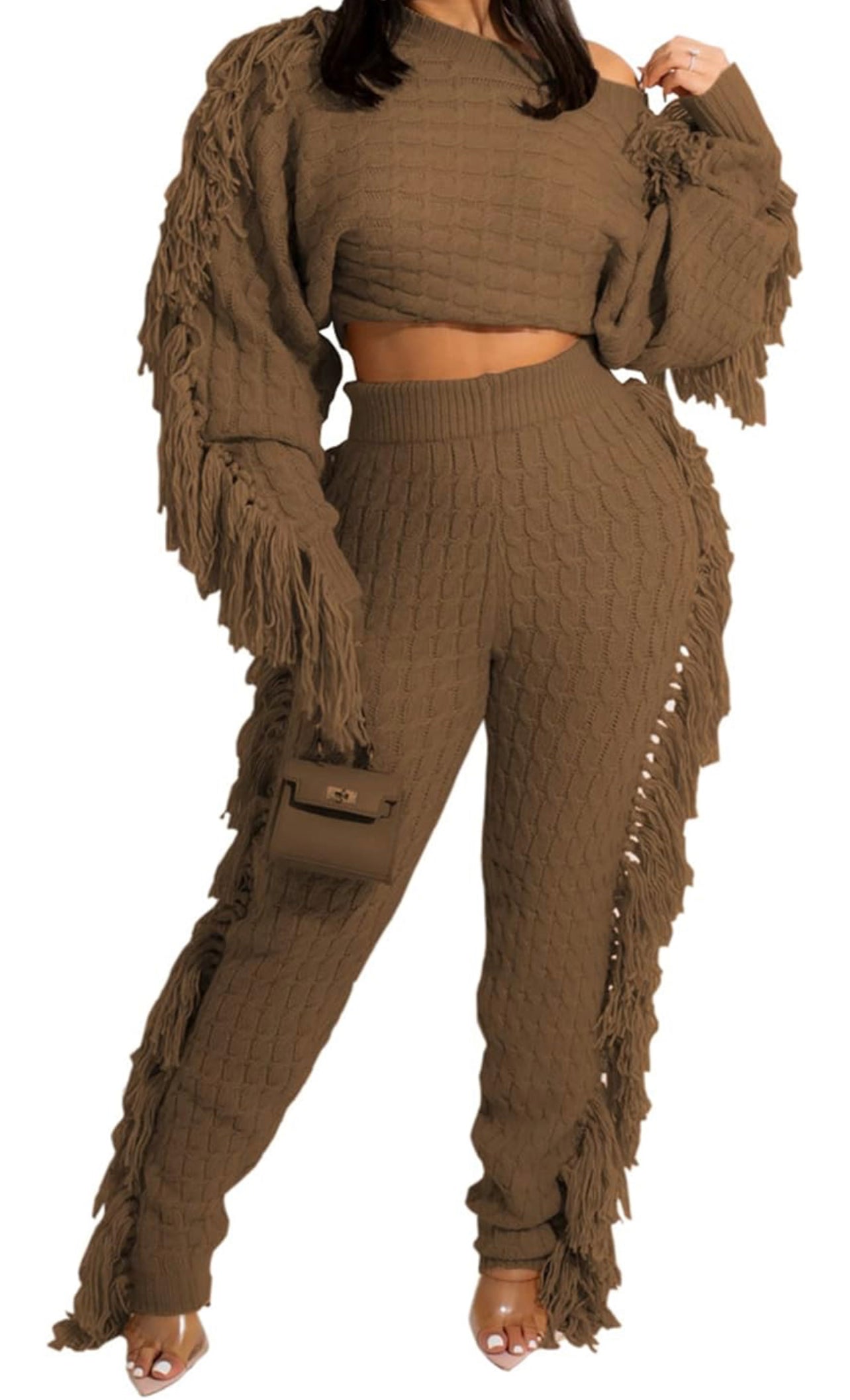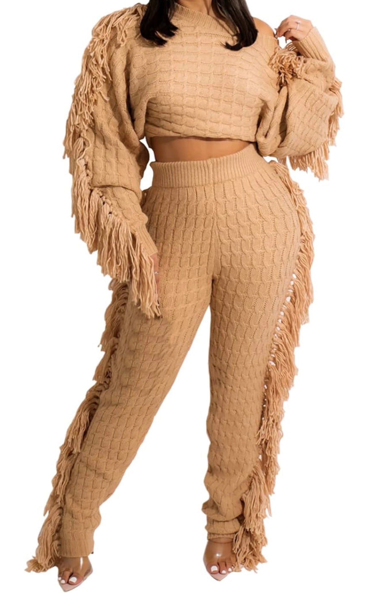 Add a lil razzle dazzle to your walk. AniCrown’s Cable Knit Tassel 2-piece Jogger Set will make moves with you as you strut your way through the mall or your kitchen.