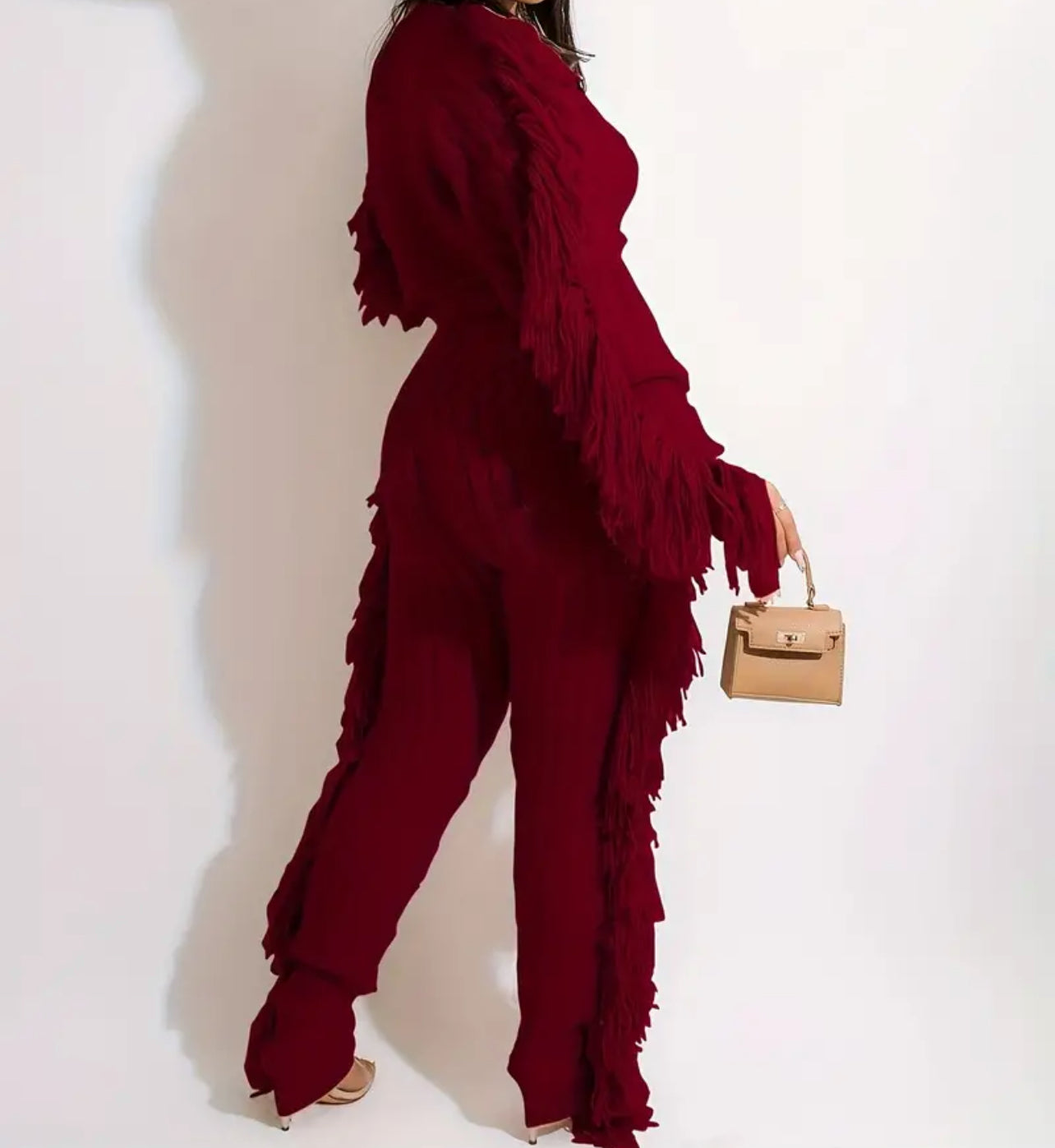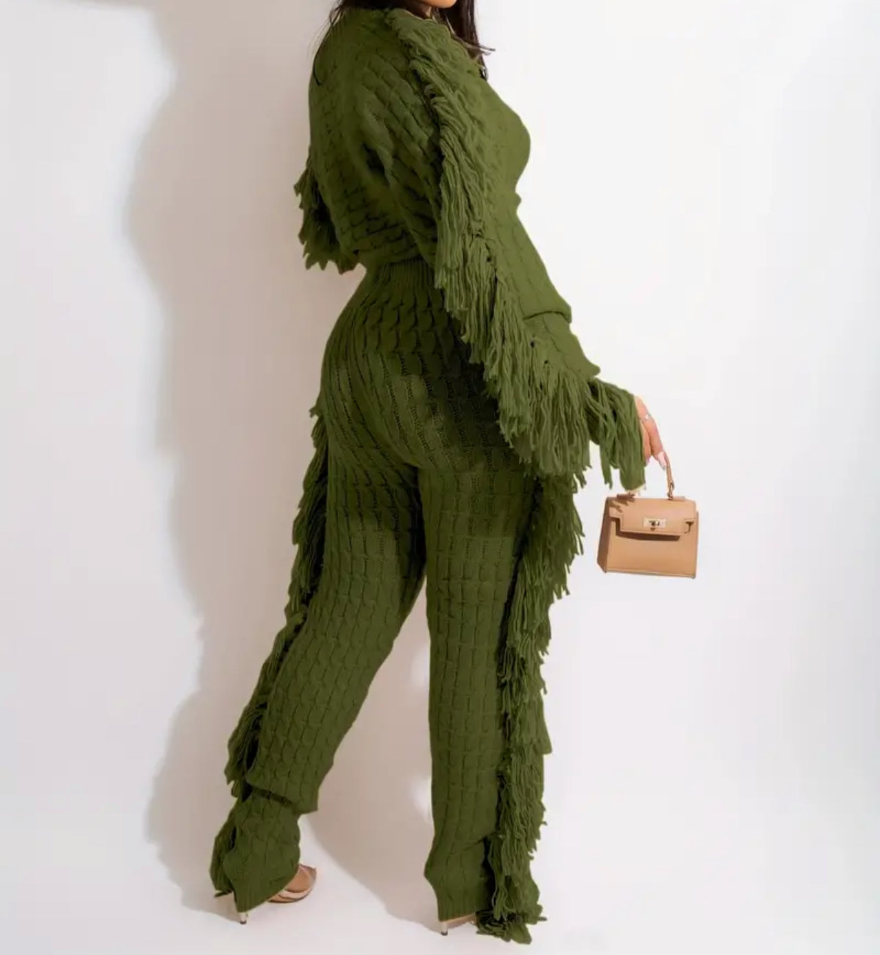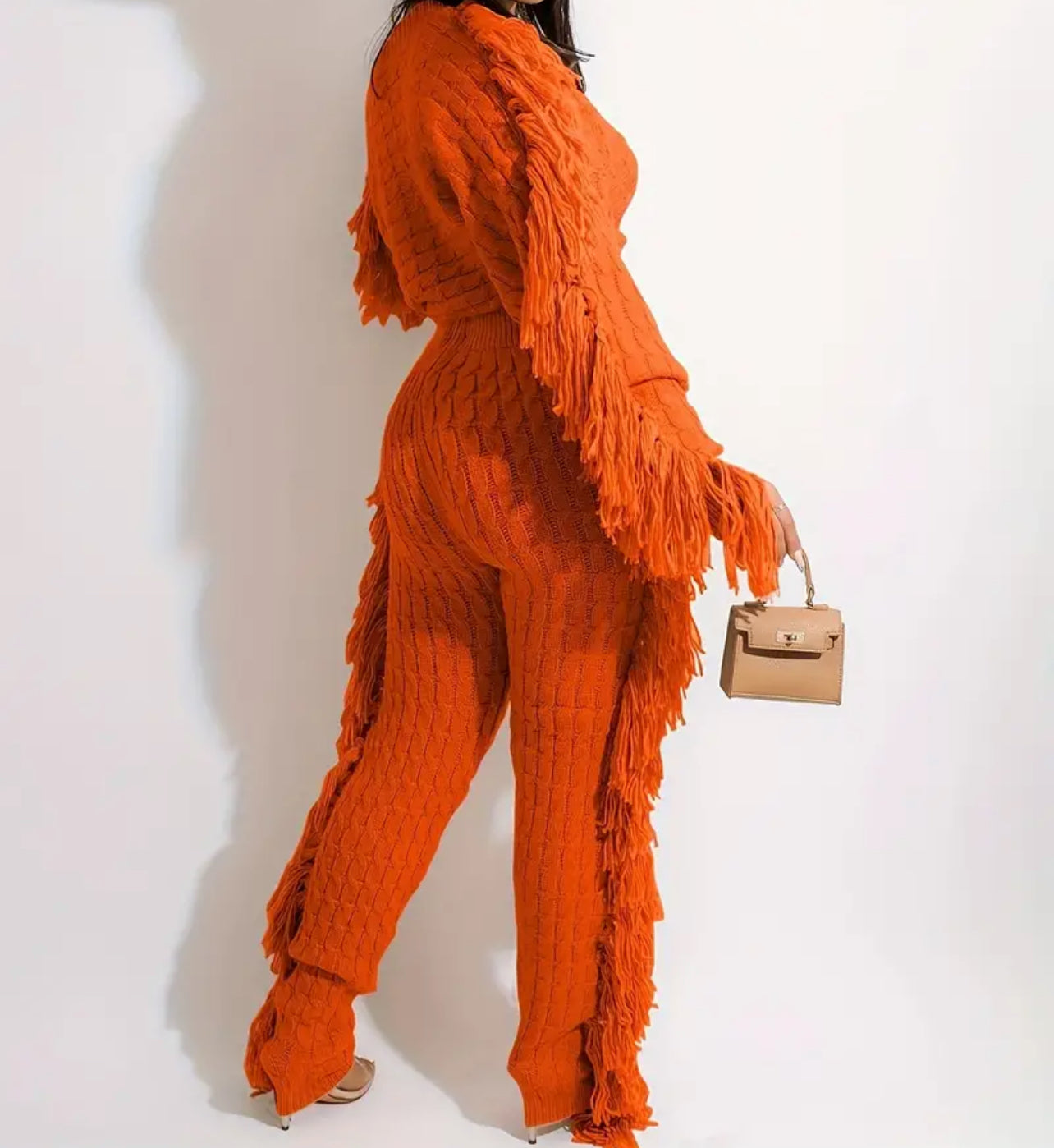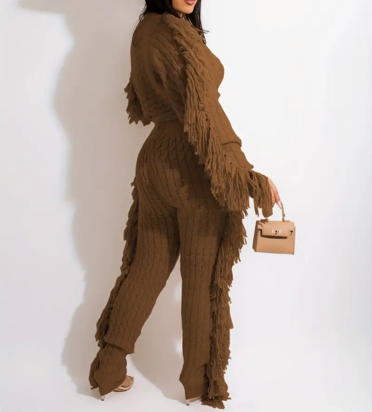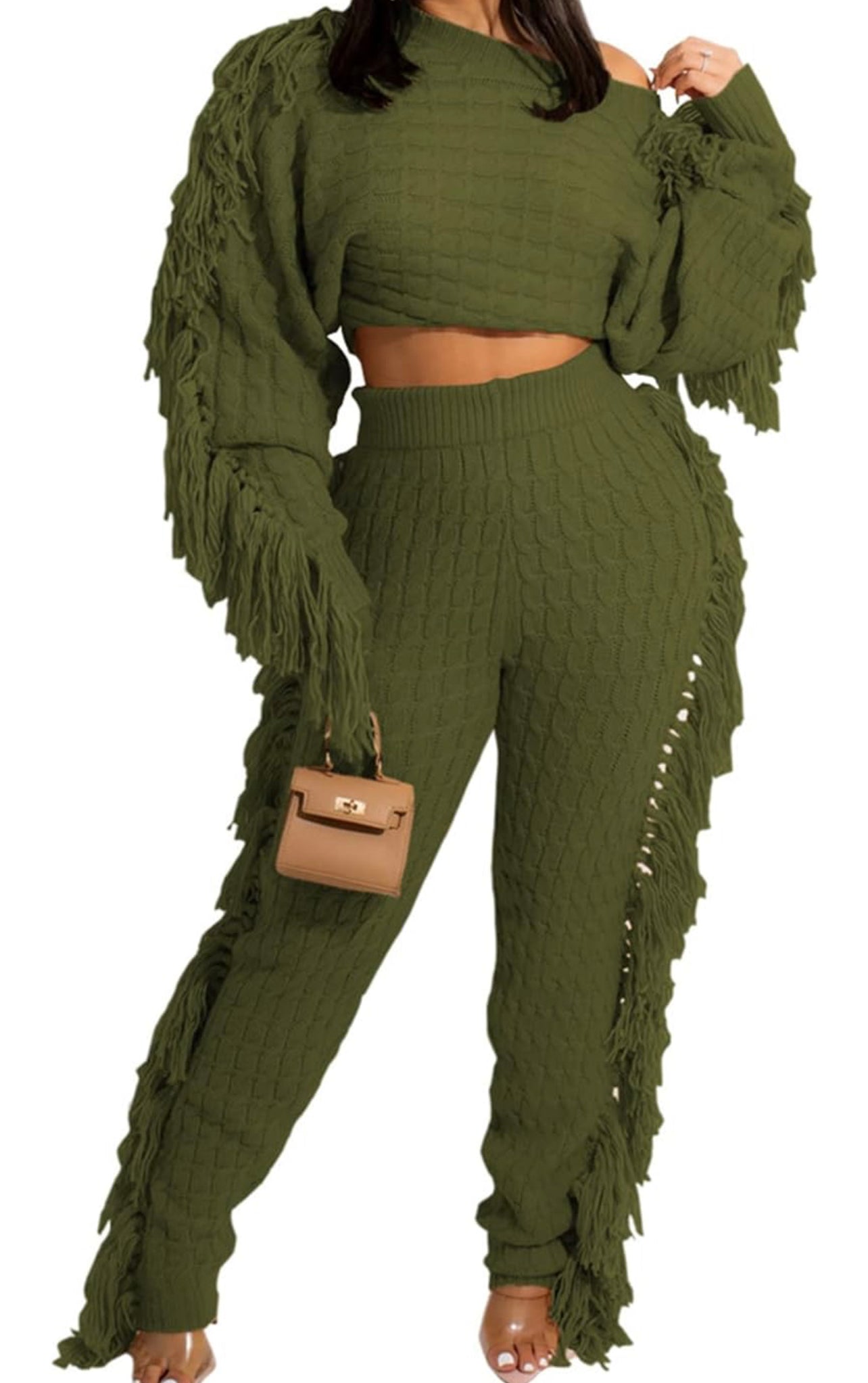 Add a lil razzle dazzle to your walk. AniCrown’s Cable Knit Tassel 2-piece Jogger Set will make moves with you as you strut your way through the mall or your kitchen.