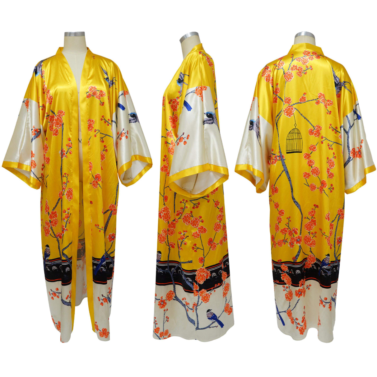 Plus Size Long Elegant Oversized Floor Length Lightweight Open Front Coverup Kimono Duster Robe, YELLOW BLOSSOM